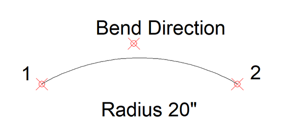 With ‘Start, End, Radius, Bend Direction’, an arc is created by entering the start point, end point, radius, and direction of bend.