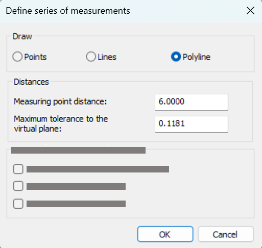 - A window Define series of Measurements will open open. You may choose to draw either Points, Lines, or Polylines. You also have the option to: