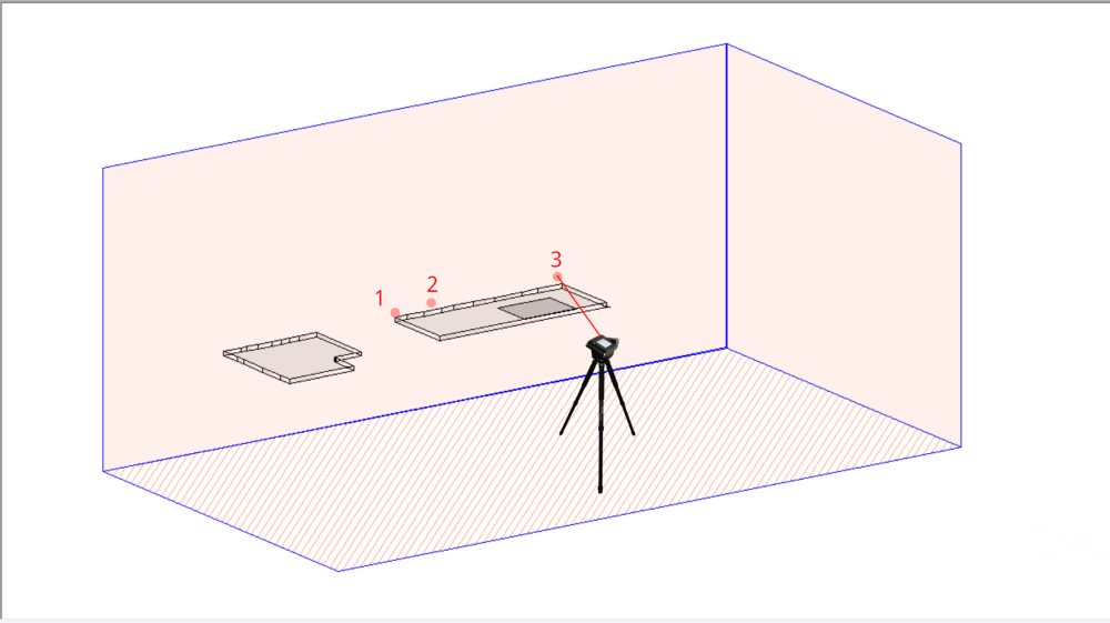 - The command window and Flexijet screen will indicate that the series of measurements was created, and then will ask again for the start point of the horizontal series of measurements. You have completed the definition of the first series of measurements and may now create an additional series of measurements if you choose, for example on another wall. Or click ‘confirm’ on the computer or ‘Cancel’ on the Flexijet to end the definition of measurement series.