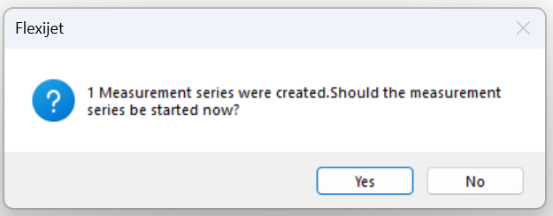 - If you prefer to start the measurement later, just click on the Start Series of Measurements button on the Flexijet Ribbon.