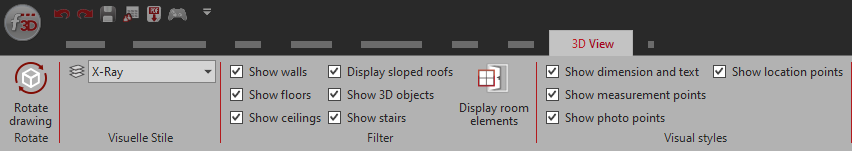 Functions on the 3D View ribbon: