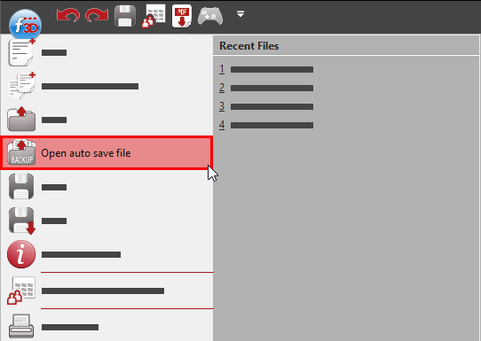 FlexiCAD automatically creates a backup autosave file of your work-in-progress as you work so that the file may be recovered in the event of an unforeseeable incident, such as battery dying or operating system crash.