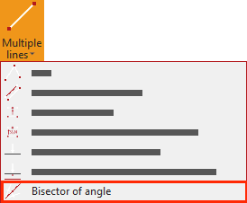 - Click on the ‘bisector of angle’ function from the drop-down menu of Multiple lines in the Draw ribbon.