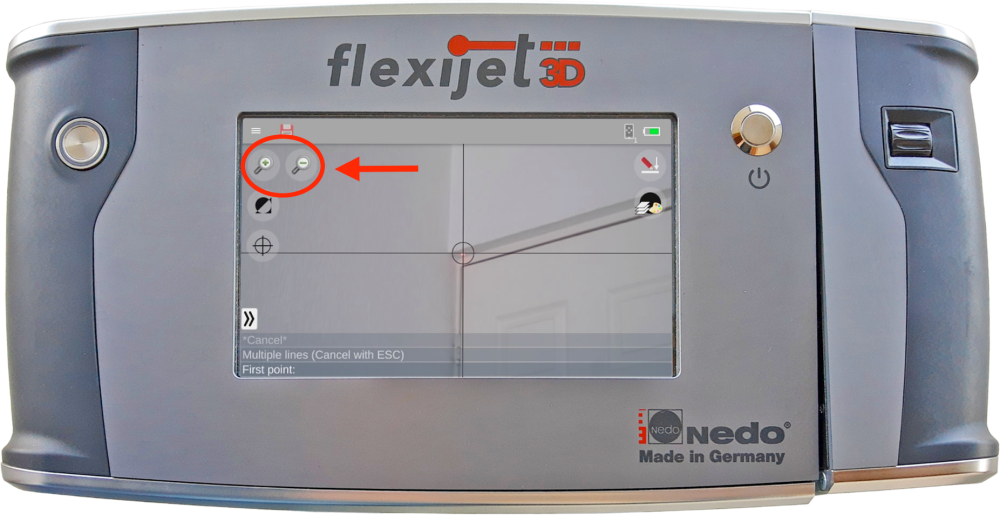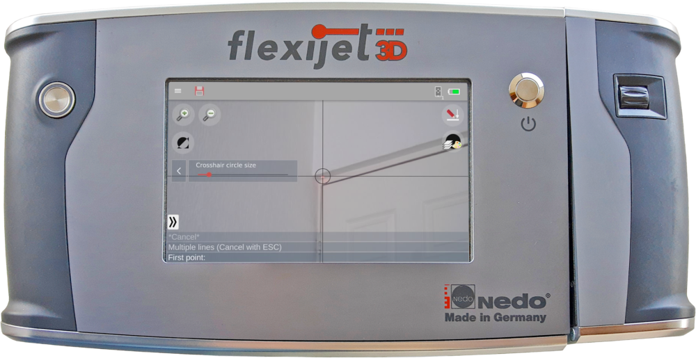 Flexijet 2 has a built-in camera that can be used in several situations. For example, if the object is too tall to get close to, or it is sunny and the laser is hard to see, Activating Flexijet’s built-in camera can help.