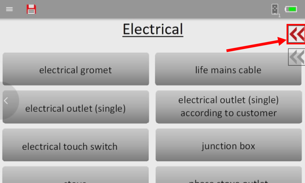 To access this menu, click on the Right arrow or swipe from Right to Left to open the ‘Countertops & Stone’ screen on the Flexijet.