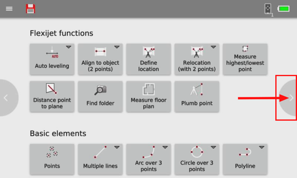 Auto-Levelling, Align to Object, Repositioning, and more can be accessed in the ‘Basic Functions’ section of the Flexijet’s touchscreen.