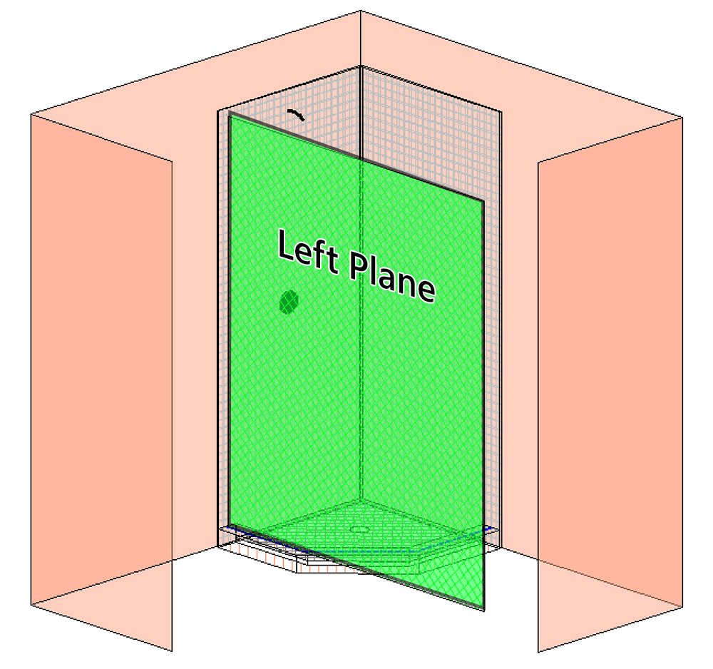 - Following the Command window, Click Left and Right on the glass placement lines in the plan view folder to set the desired plane. The vertical plane will extend plumb vertically from the 2 points setting the plane.