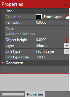 When an element is selected, it displays the properties of the corresponding element. Here is an example of a line that is marked. If you make changes in these properties, these immediately affect the selected element.