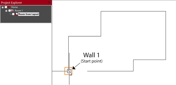 - Click with the mouse or tap on the starting point of wall 1.