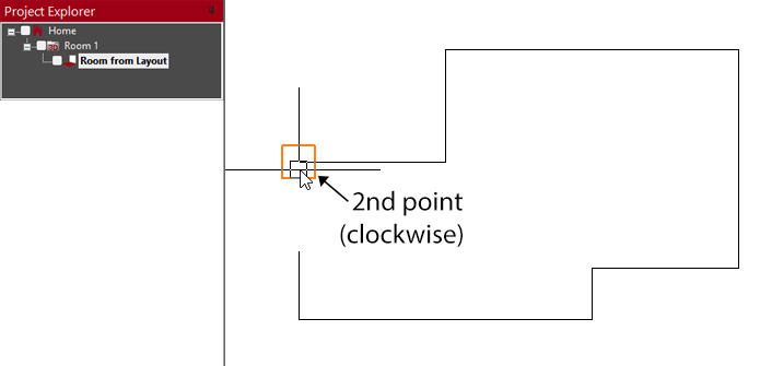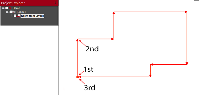 - Click with the mouse or tap on the end points of the wall lines in a clockwise direction. Note that after clicking the start point, only subsequent corners need to be clicked. A red line on the screen will indicate your progress.