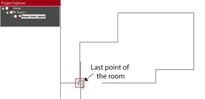 - Then Click on the last point of the room. Note: if the room is closed, the Last Point would be the same as the First point