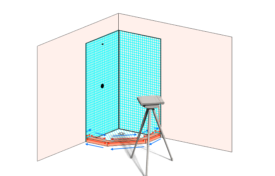 - The multiple lines function is activated automatically right away after defining the ‘Shower threshold’ plane. Measure the whole contour of the curb as usual, in a clockwise direction.