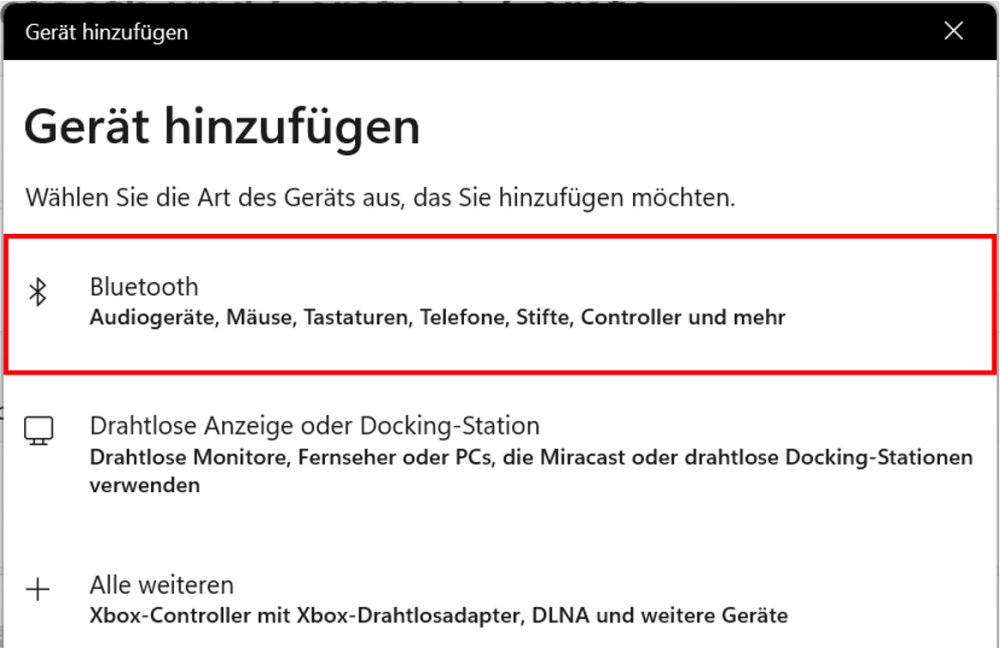 - Wähle im nachfolgenden Menü „Xbox Wireless Controller“ aus.