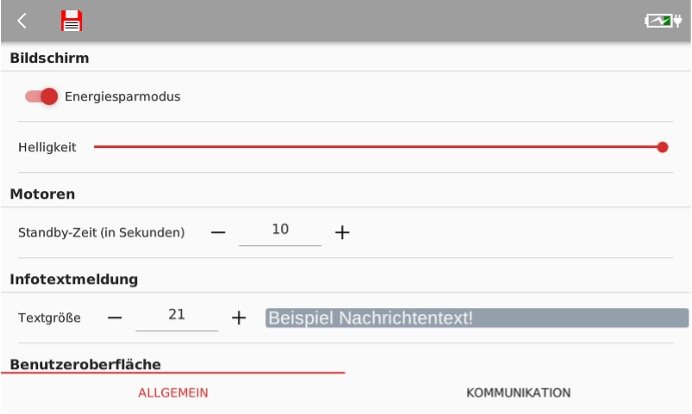 Hier gibt es die Einstellungen „Allgemein“ und die Einstellungen „Kommunikation“. Neben der Helligkeit des Displays kannst du hier die Größe der Infotextmeldungen einstellen.