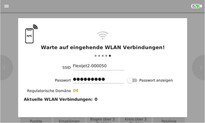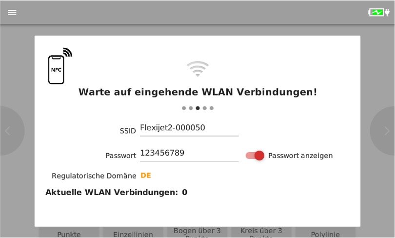 Als Nächstes erscheint auf deinem Flexijet-Display das Eingabe-Fenster „Warte auf eingehende WLAN-Verbindung“.