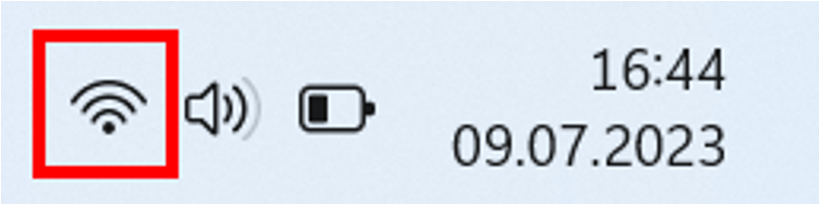 - Klicke auf deinem PC in der Taskleiste auf das WLAN-Symbol. Es öffnet sich ein Fenster, in dem alle verfügbaren WLAN-Geräte angezeigt werden. Darunter sollte sich auch dein Flexijet befinden.