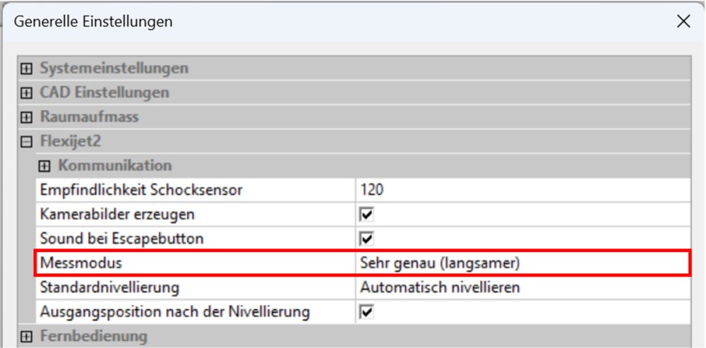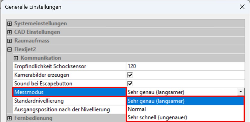 Um das Fenster „Generelle Einstellungen“ erneut aufzurufen muss das Flexijet-Messgerät verbunden sein.