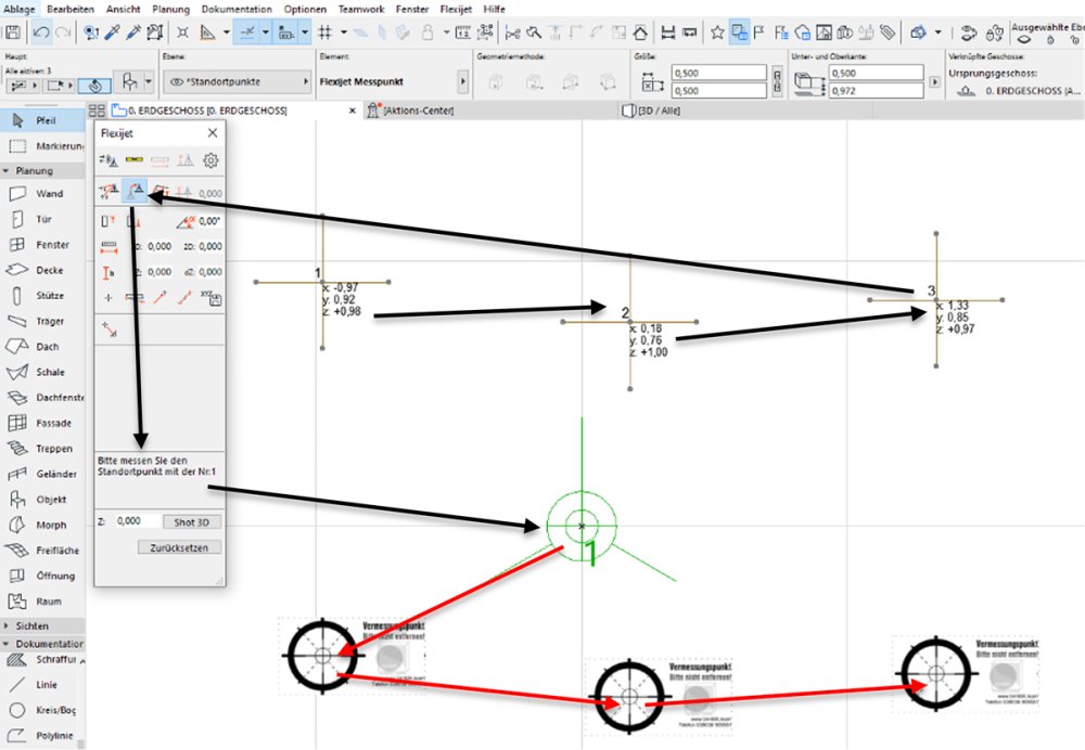 Standortpunkte kleben und einmessen