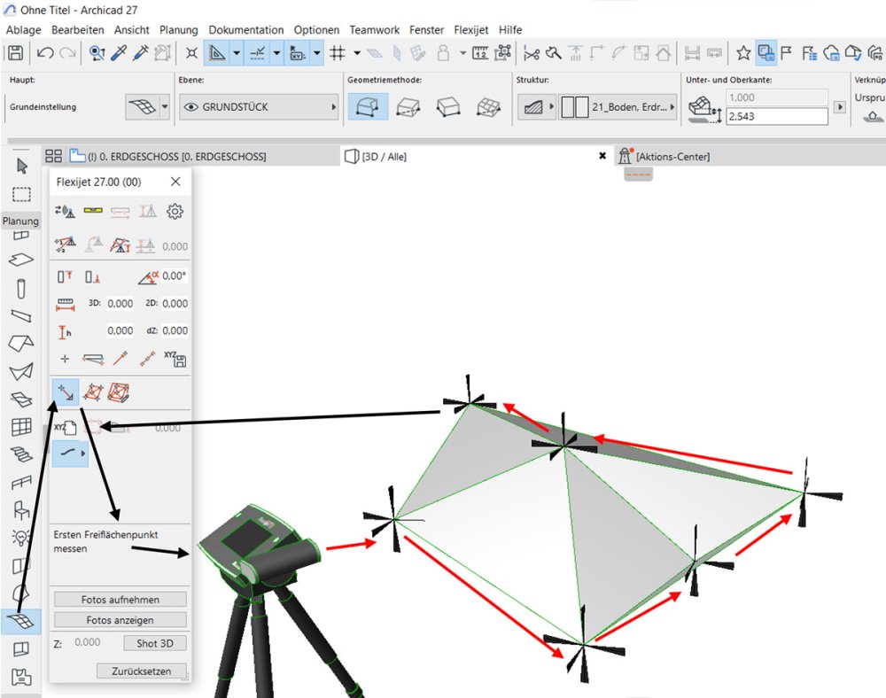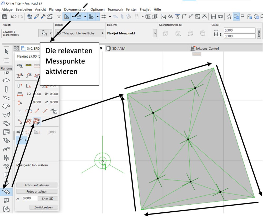 - auf „Freiformfläche durch aktivierte Messpunkte mit Umfassungspolygon erzeugen“ klicken