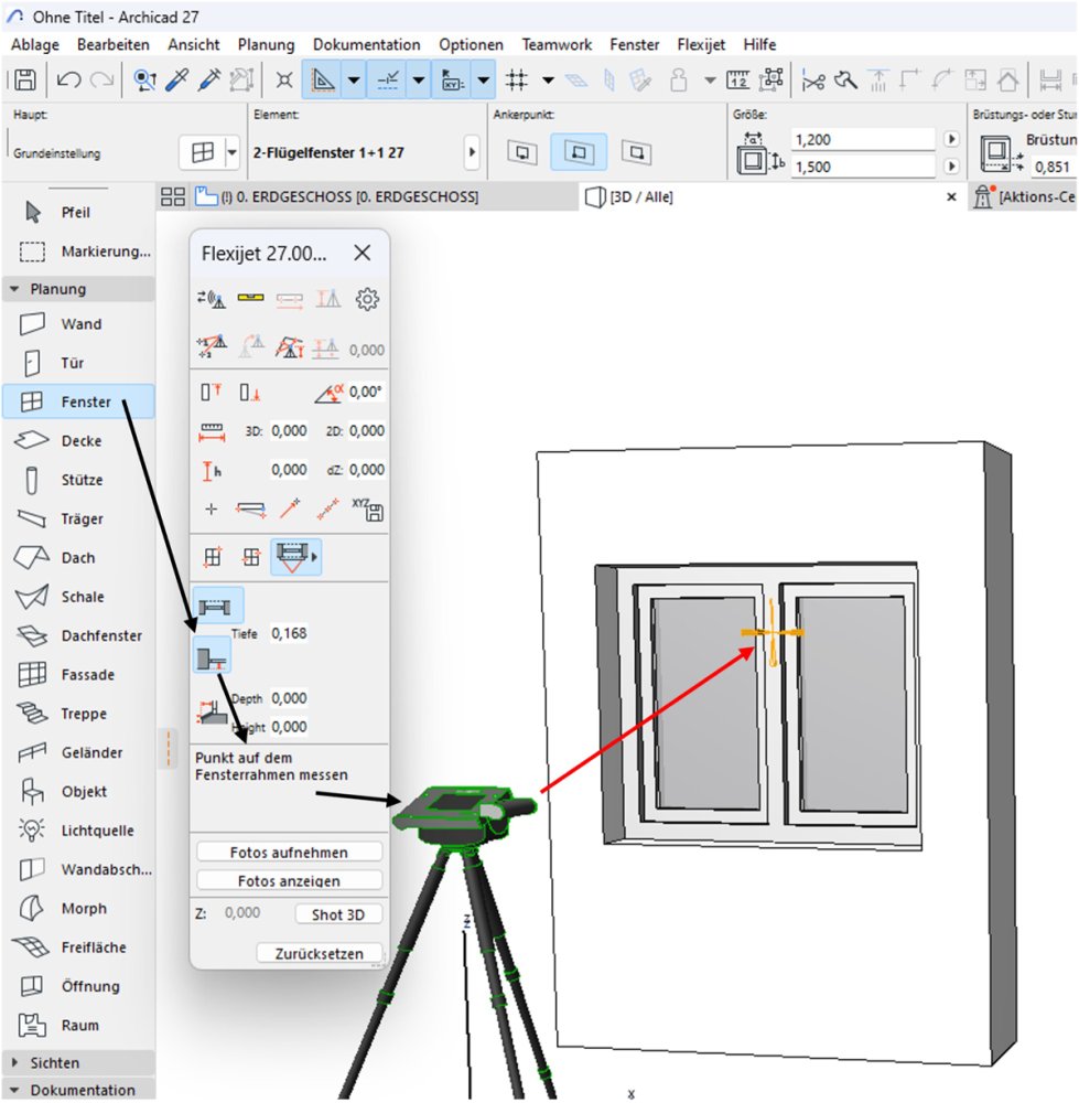- einen Punkt an der Laibung des Fensters messen