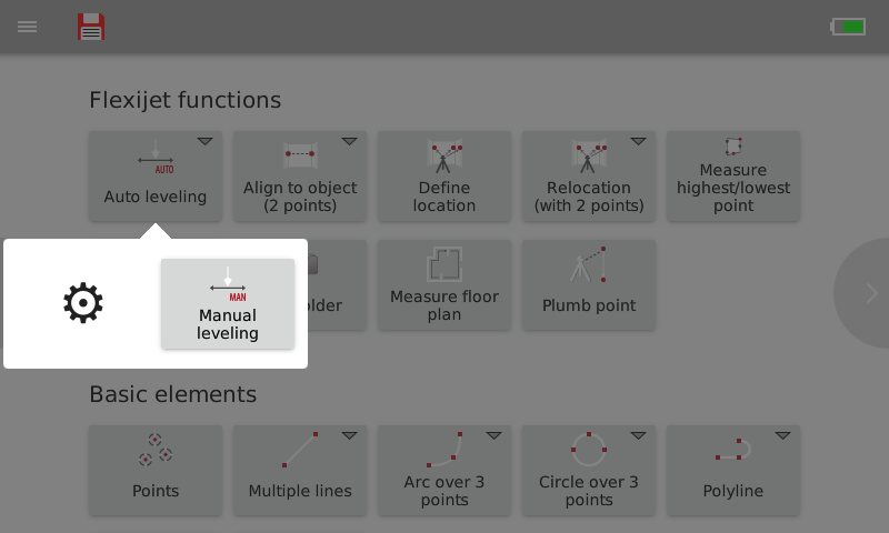 Auto-Levelling, Align to Object, Repositioning, and more can be accessed in the ‘Basic Functions’ section of the Flexijet’s touchscreen.