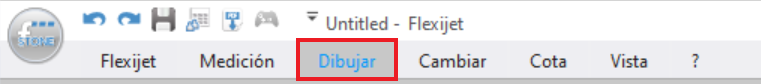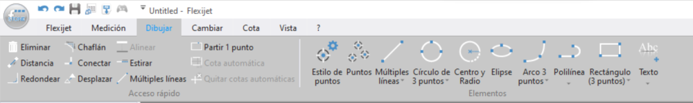 La cinta de dibujar contiene muchas herramientas para crear elementos en la pantalla haciendo clic/tocando, introduciendo coordenadas/longitudes o midiendo con el láser 3D de Flexijet.