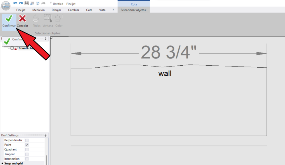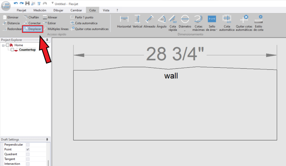 Normalmente se utiliza para añadir “salientes” a las encimeras, pero esta función también se puede utilizar en otros elementos, como polilíneas, arcos, círculos, etc, para crear un nuevo elemento a una distancia definida.