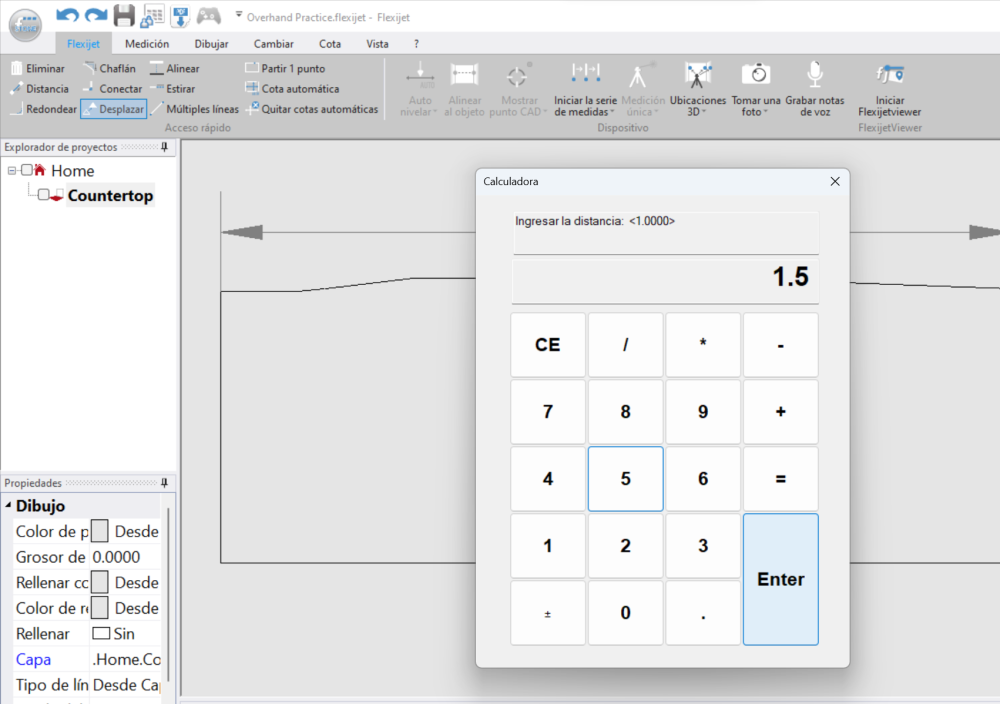 - Introduzca la distancia a desplazar. Simplemente escriba el valor en la línea que se encuentra debajo de la ventana de comandos y, a continuación, pulse “Confirmar” o la tecla “Intro” para aceptar el valor.