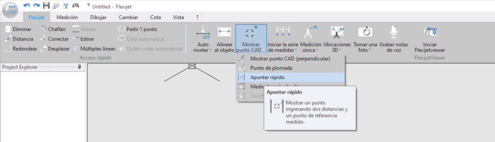 La función “Quick Aim” permite al usuario hacer que la Flexijet proyecte un punto a una distancia de un punto seleccionado en el dibujo de medición.