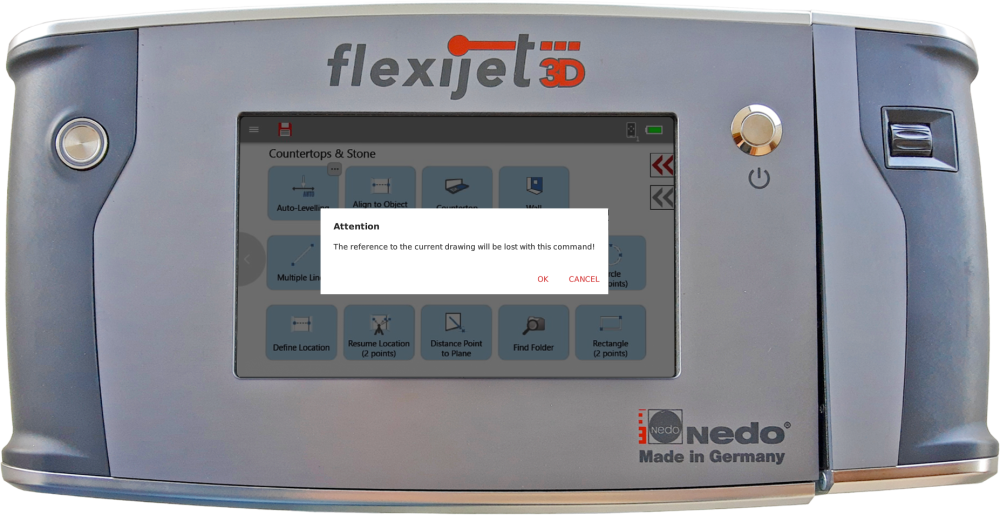 A warning dialog will appear confirming that you wish to Auto-Level your Flexijet, as this will change the reference of the current drawing. Click ‘OK’ to proceed or ‘Cancel’.