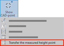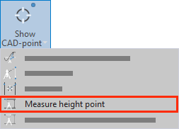 With the ‘Measure height point’ command, a random point whose height should be saved is measured. For example, the height of a doorway. This height can then be transferred to other surfaces in a room.