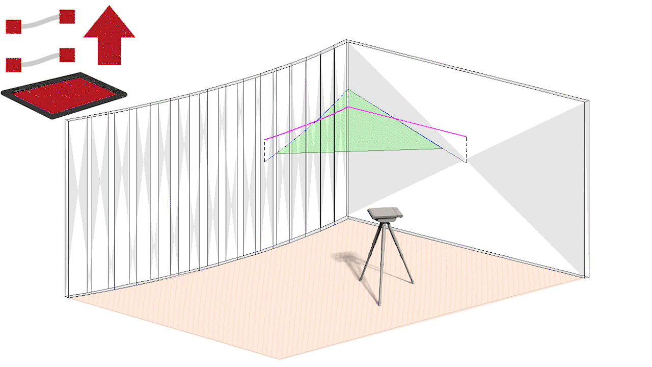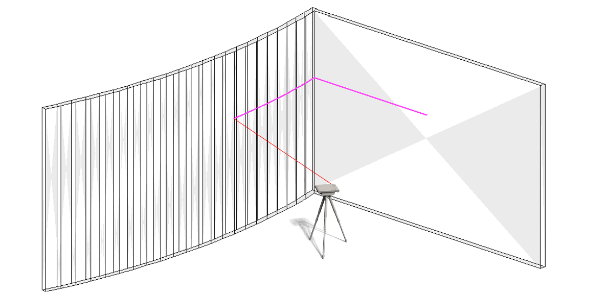 In this example, the final position of the frame was unknown at the time of measuring. So a line was measured approximately at the desired distance (pink line).