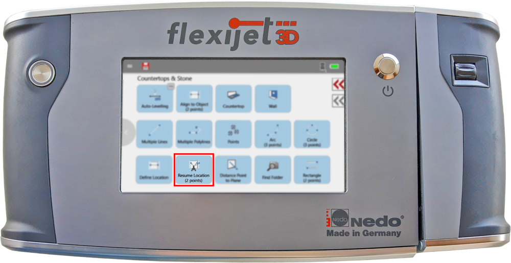 - Resuming location with 3 points is only recommended when Flexijet has been manually leveled. Example: measuring a on a boat, or measuring a reception desk in a shop on a pallet.