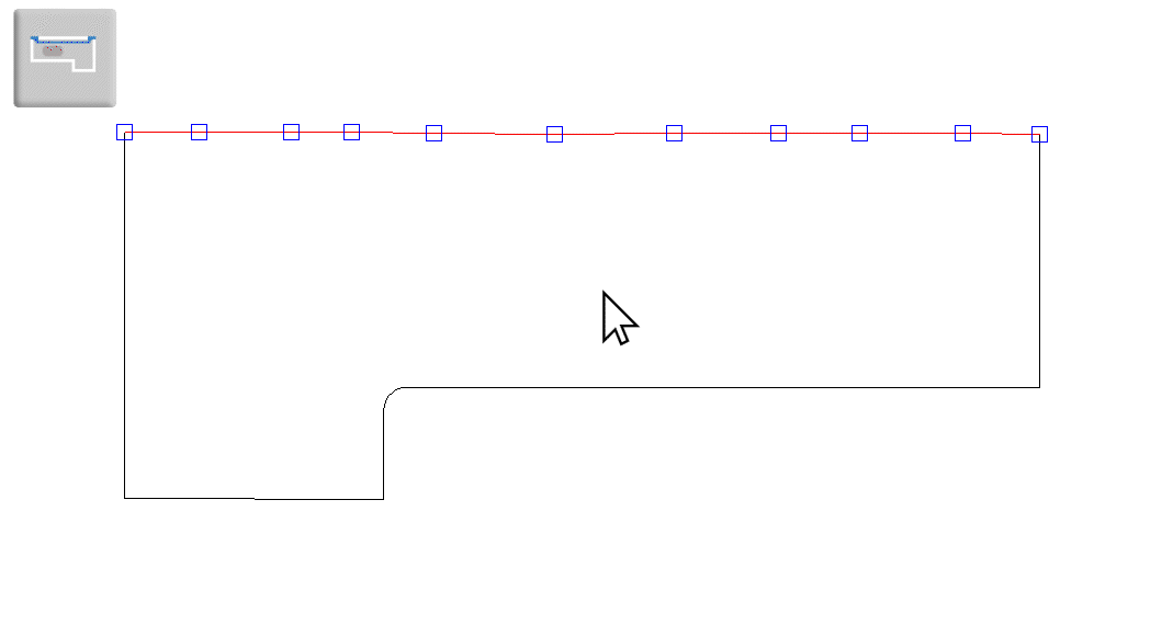 The Scribe Tabs function is used to adapt countertops to uneven walls, especially when a backsplash is applied. This feature offsets the countertop from the wall to ensure easier fitting and simplified production when you have an open end.