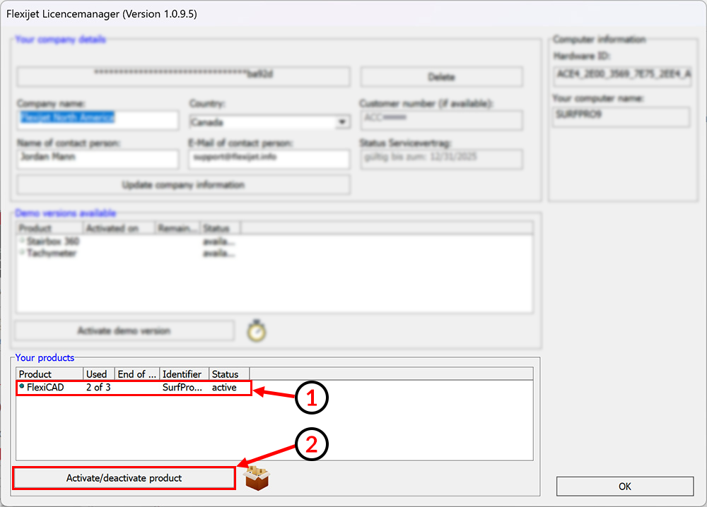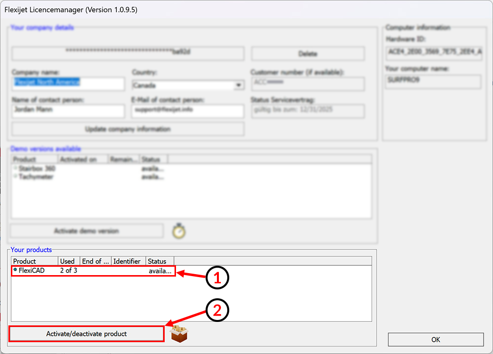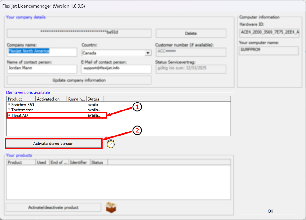 - (1) In the section ‘Your products’, select FlexiCAD by clicking on it.