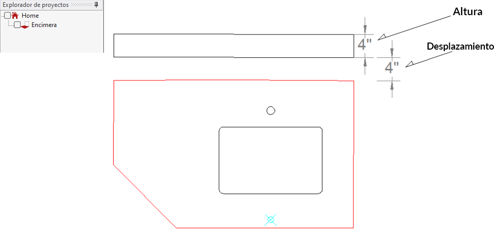 - En la ventana que aparece, introduzca la “Altura” del panel trasero y el “Desplazamiento” (a qué distancia de la encimera se dibujará el panel trasero). También puede elegir si el salpicadero se dibuja como elementos individuales (4 líneas) o como polilínea.