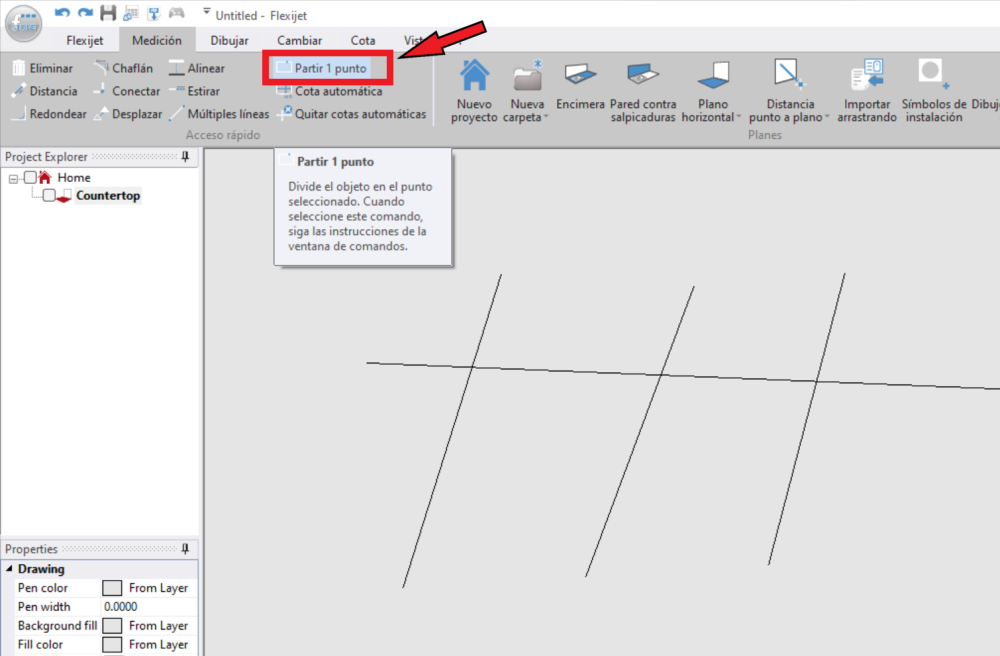 Para romper entre 2 puntos, utilice ‘Partir a 2 puntos’.