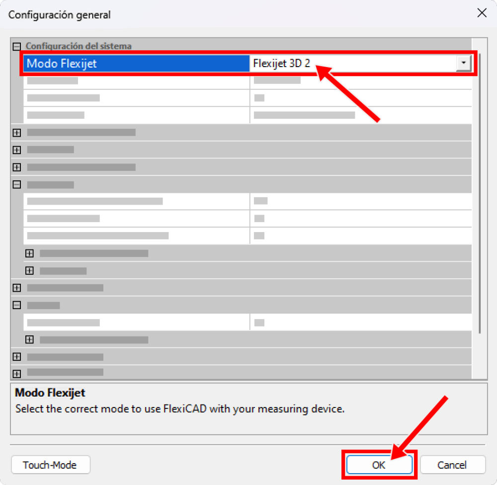 - Ahora, abra FlexiCAD/Flexijet Stone en su PC/Tablet. Cuando aparezca «Preferencias generales», asegúrese de que Flexijet Mode «Flexijet 3D 2» está seleccionado y haga clic en «OK» para continuar.