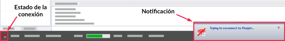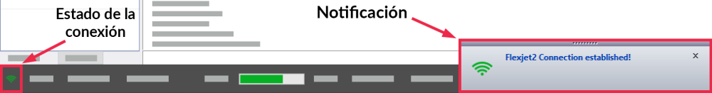 - El estado de conexión del Flexijet se muestra en la esquina inferior izquierda.