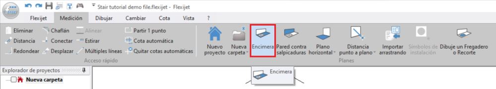 Este botón creará automáticamente una carpeta de proyecto si no existe, pedirá un nombre para la carpeta de la encimera horizontal y luego pedirá al usuario que establezca el plano horizontal.