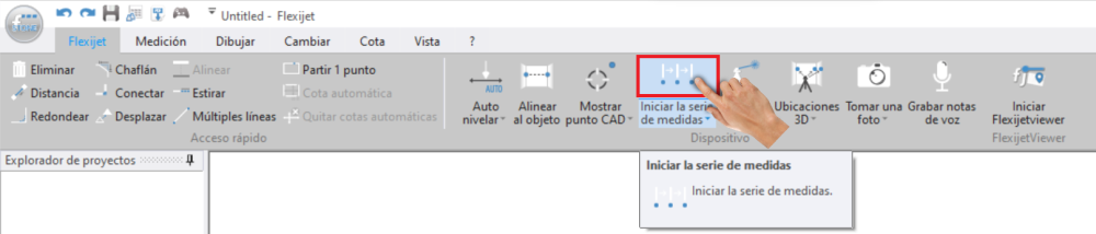 - Si prefiere comenzar la medición más tarde, sólo tiene que hacer clic en el botón Iniciar serie de mediciones de la cinta de opciones de la Flexijet.