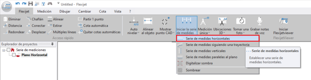 - En el desplegable de ‘Iniciar serie de mediciones’, seleccione el comando _ Serie horizontal de mediciones. _