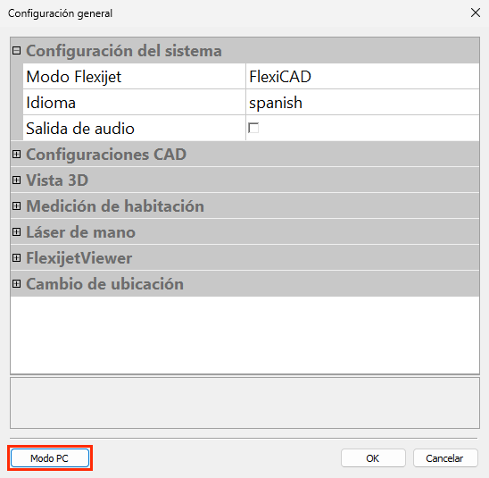 Para seleccionar entre el modo táctil y el modo PC, abra FlexiCAD y seleccione “Modo táctil” o “Modo PC” en el panel de preferencias generales.