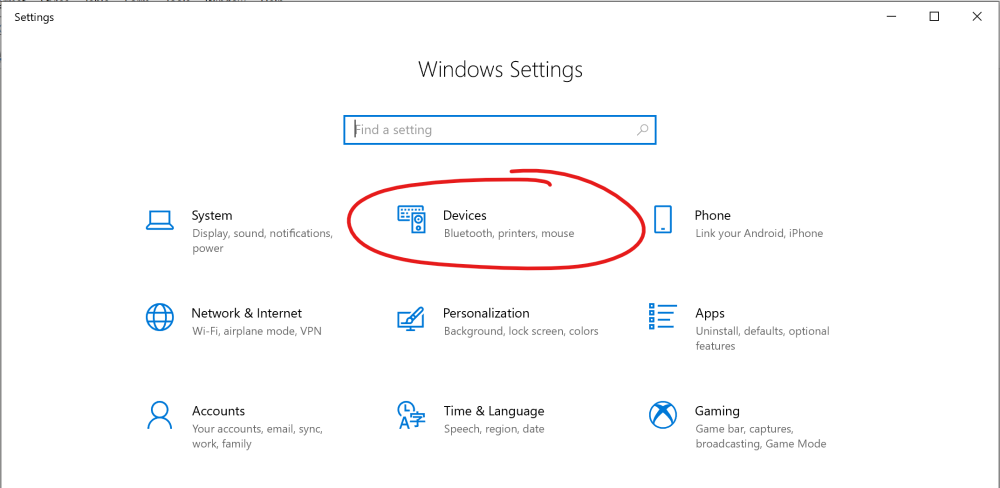 - .在Windows 电脑/平板电脑上,转到’Settings设置’,然后选择’Devices设备’。