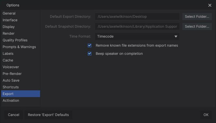 - Default Snapshot Directory: Each time you add a timeline to the export queue, a snapshot is created of the current state of the timeline. This allows you to continue working in HitFilm without altering the export item. This directory determines where those snapshots are stored, until the export task is rendered.