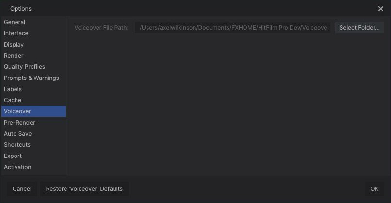 - Voiceover File Path: Specifies the location where your recorded audio files will be saved.