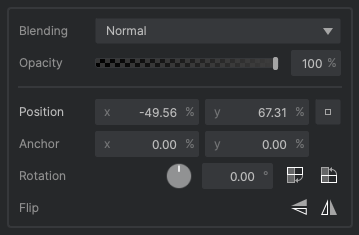 - Position: Adjusts the location of the layer on the canvas. For basic adjustments, you can simply click and drag the layer directly on the canvas. But precise adjustments can also be made in the controls here.