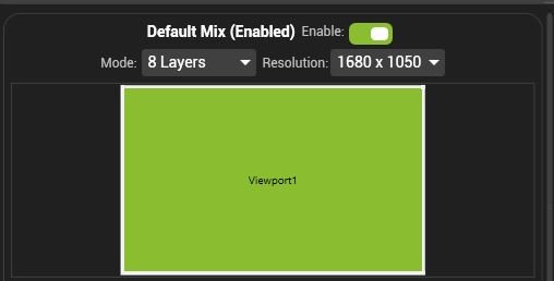The size in pixels of all layers in that mix. The Mix resolution is usually best set to be as high as the highest content resolution. Media of different resolutions can be played on the same mix however playing content of a higher resolution than the mix will result in down scaling.