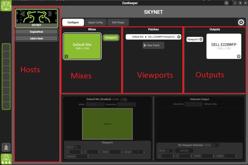 A viewport is comprised of an input window and an output window. The input window is where in the Mix the viewport samples, while the output determines where on the output the viewport is placed.