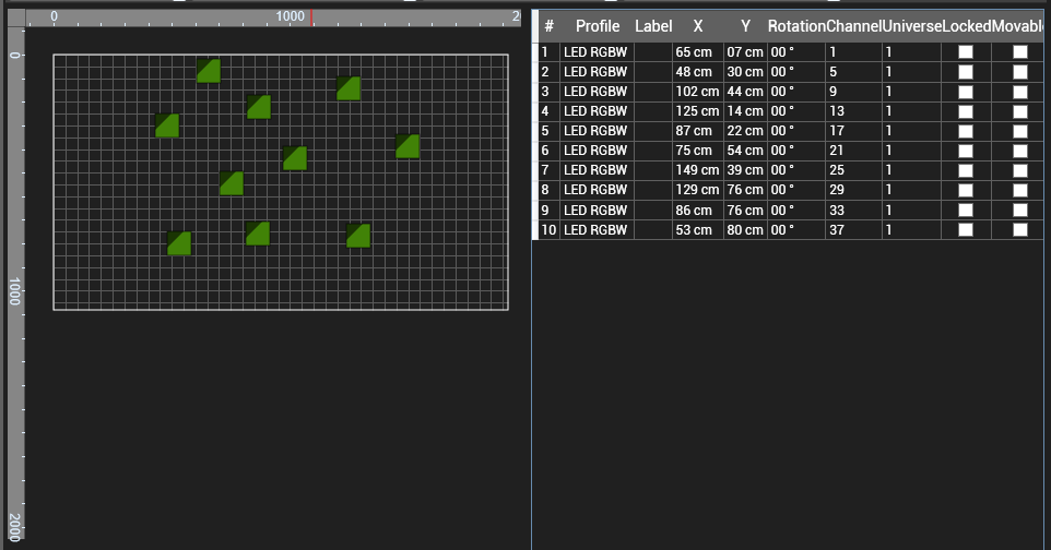 This will open a new Pixel map where fixtures can be created, added and patched to universes.
